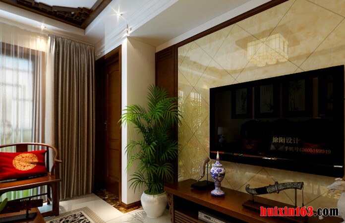 这所住宅的占用总面积是65平米,是一个正规的两居室住宅,室内的装修风格采用的是新中式的装修模式,整个项目的施工优雅奢华又具有中式的装修古典美。