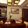餐厅的整体设计更加的温馨和惬意,实木的餐桌椅搭配上一个换上个的中式靠垫让餐厅的奢华感充分的展示出来,白色的花纹墙纸铺设提升了餐厅的采光明亮程度,实木的搁置框架不仅是展示物品的好去处,更是衬托餐厅装饰美感的重要因素。