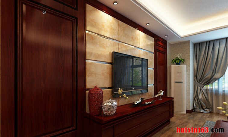 风华园—82平米—两居室—现代中式风格装修效果图—电视墙