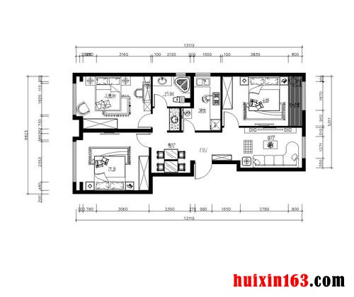 绿地世纪城—81平米—三居室—现代简约装修效果图—平面图