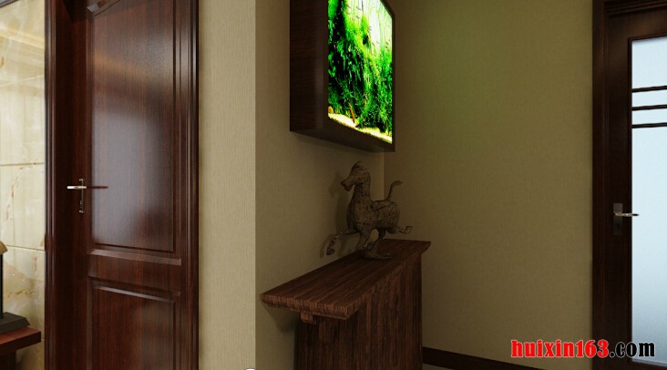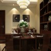 餐厅的位置是以一个独立的空间存在的,圆形的水晶吊灯使用让餐厅的气氛更加的温馨和舒适,整体的实木家具的搭配给人一种更统一的装修风格,餐桌椅旁边一个大型的实木搁置架的使用不仅可以起到很好的装饰作用,还可以是用来展示名贵珍品的区域,有效的把主人的生活品味提升到最高。
