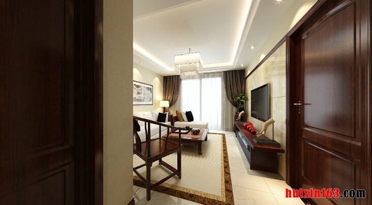 客厅的整体装饰简约舒适又明了,白色的石膏板吊顶装备搭配上造型奇特的大型水晶灯的使用瞬间提升了空间的开阔性和奢华感,白色的瓷砖地面装饰让空间的明亮度有多提升,实木的家具搭配软装的形式给人的舒适感比较强烈,电视背景墙采用的瓷砖装饰更是给客厅的奢华大气带来更多的诠释。